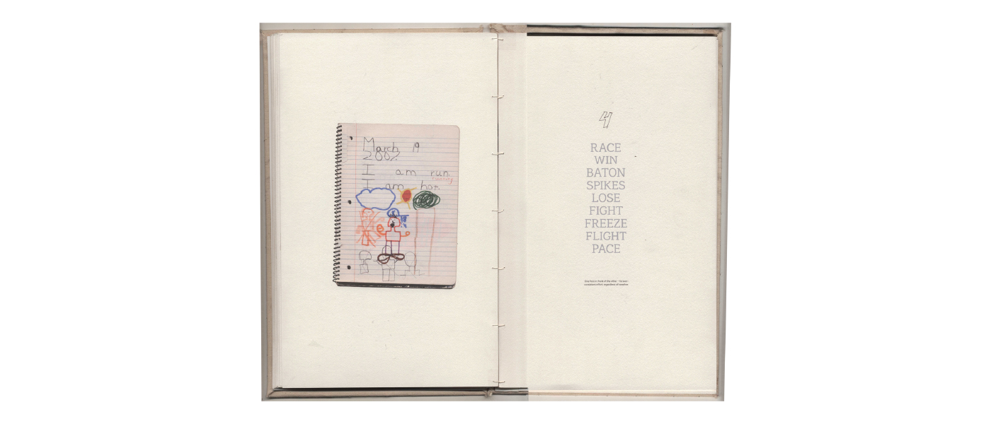 A bastard book is “birthed” by an unmarried author. Throughout four chapters, themes of faith, family, hope, and habit are explored. He writes about hypotheticals, wishing to make his child(ren) proud one day, while reflecting upon his own heritage. Expectations are defined as a lifelong race and the author defines their own, setting a pace that is decided based on self care, future goals, and a reality that is inevitably shared with others. He races to retain purpose.